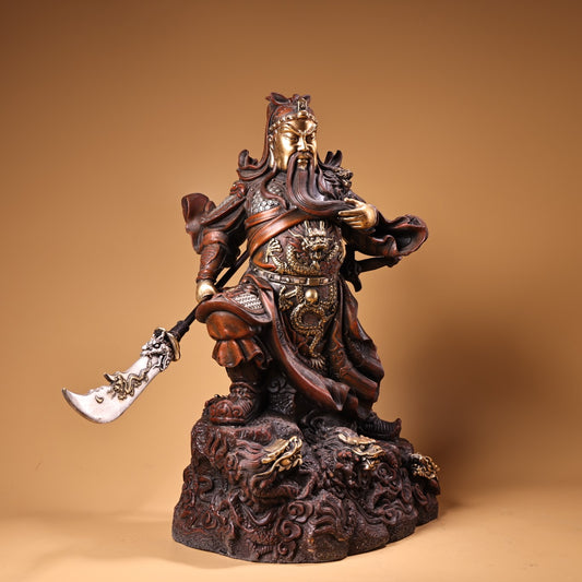 A0055 Vintage Chinese Gilt Gold Copper General Guangong Statue