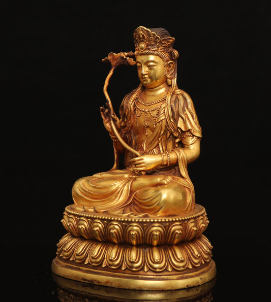 A0065 Vintage Chinese Gilt Gold Copper Bodhisattva Statue