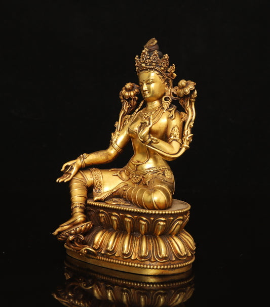 A0066 Old Chinese Gilt Gold Copper Green Tara Statue