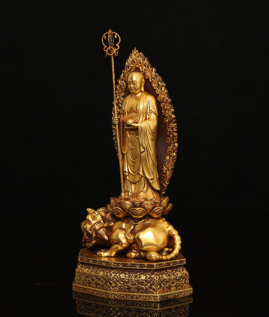 A0067 Vintage Chinese Gilt Gold Copper Ksitigarbha Bodhisattva Statue