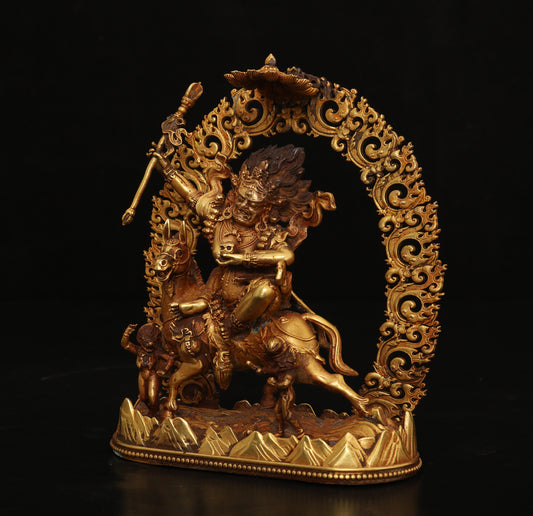 A0068 Vintage Chinese Gilt Gold Copper Palden Lhamo Statue