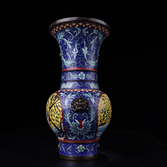 A0075 Vintage Chinese Bronze Cloisonne Crane Design Vase
