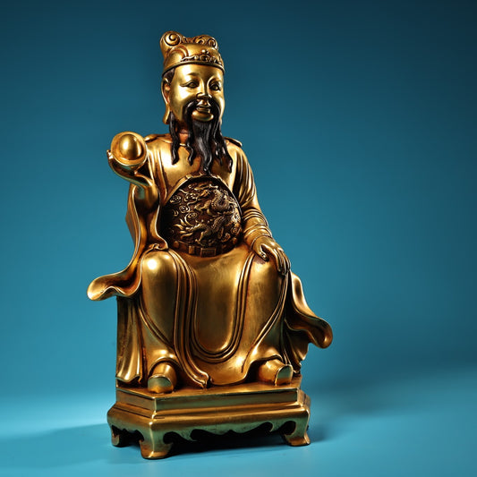 A0102 Vintage Chinese Gilt Gold Copper Fortune Taoism Deity Statue