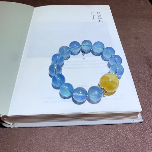 A1874 Beautiful Aquamarine & Beeswax Beads Bracelet