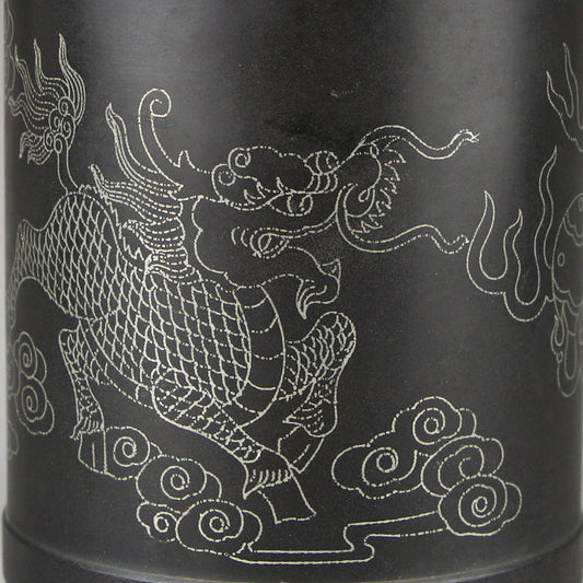 Vintage Gilt Gold Copper Inlay Gem Low Relief Fortune Dragon Design Vase w Base