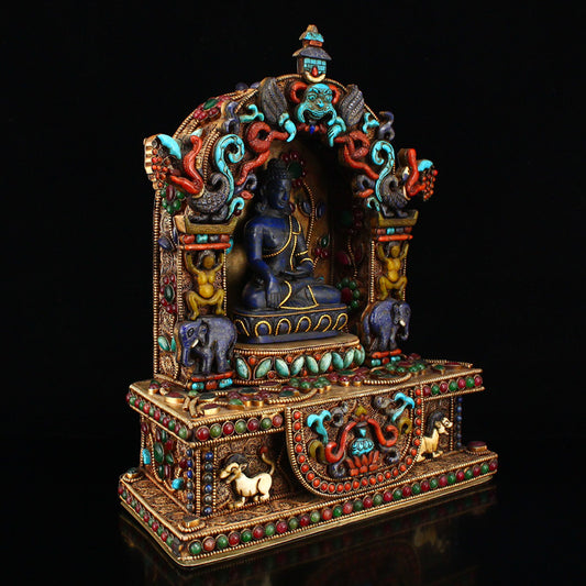Tibetan Buddhism Lapis Lazuli Sakyamuni Buddha Statue With Silver Wire Inlay Gem Shrines