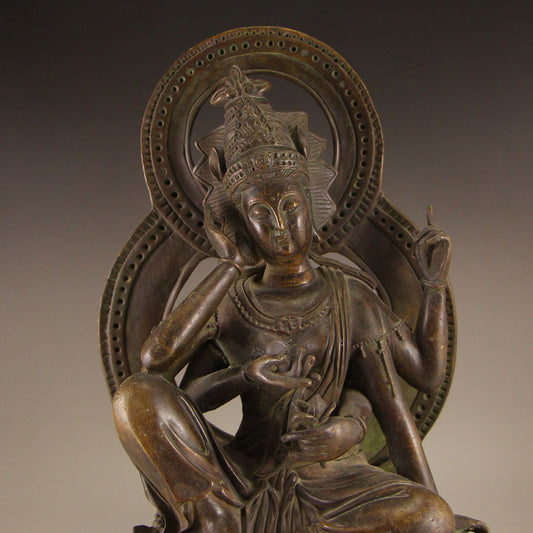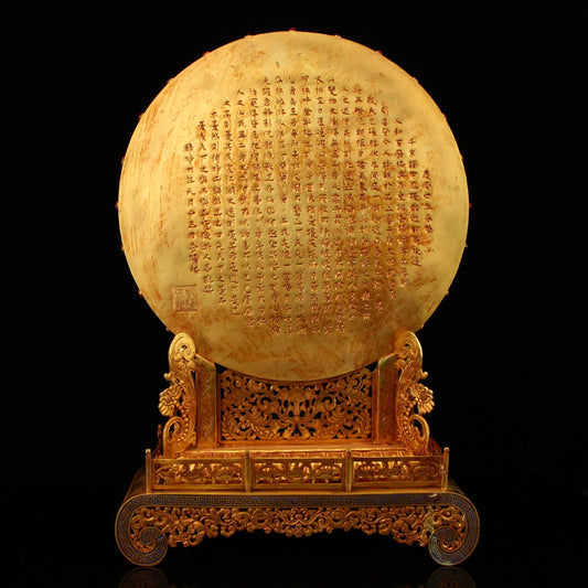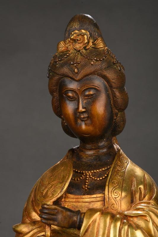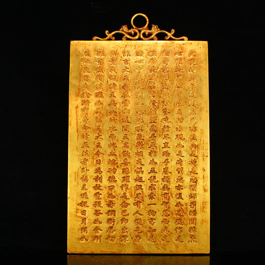 Superb Chinese Gilt Gold Copper Boddhisattva & Sutras Tangka
