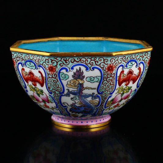 Chinese Gilt Edge Copper Enamel Dragon & Bat Design Bowl
