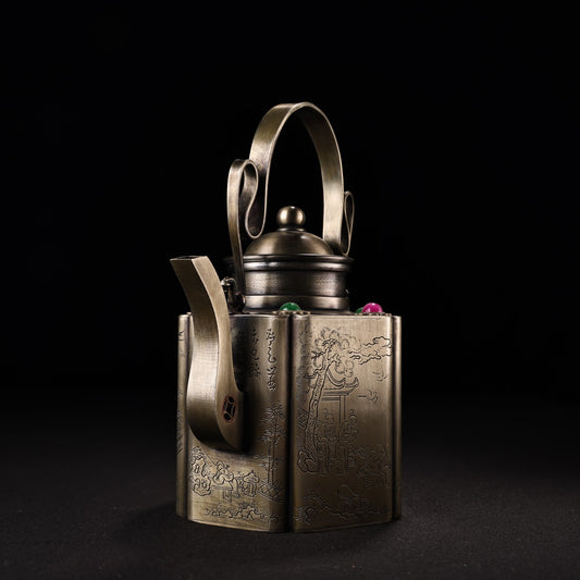 Chinese Brass Scenery Figure Design Toothpick Pot