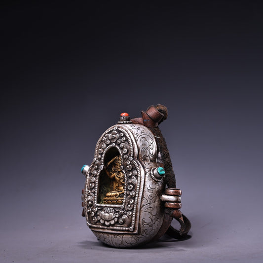 Old Tibetan Silver Inlay Turquoise & Bronze Tara Buddha Shrines Pendant