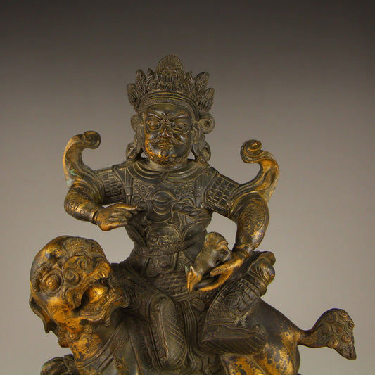 Tibetan Buddhism Gilt Gold Copper Yellow Jambhala Statue