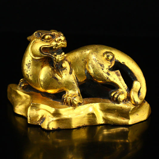 Old Chinese Gilt Gold Bronze Kylin Seal