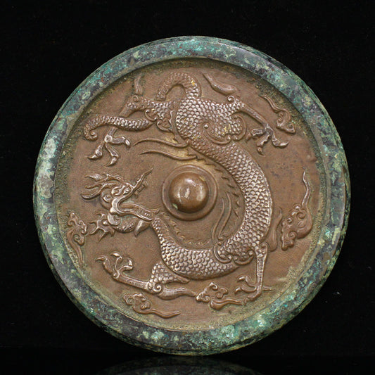 Vintage Chinese Bronze Plated Silver Lucky Dragon Mirror