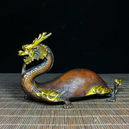 Chinese Gilt Gold Bronze Dragon Turtle Statue