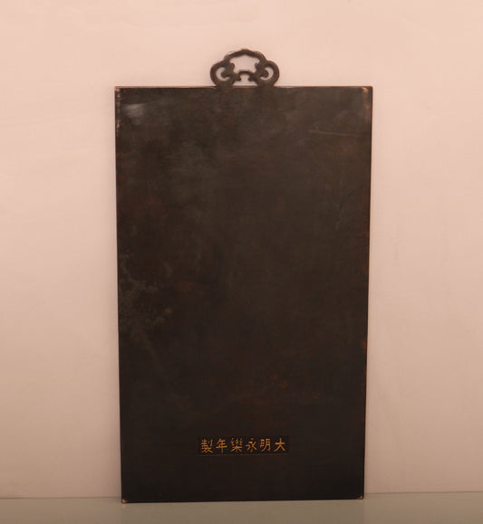 A1778 Vintage Chinese Gilt Gold Copper Samantabhadra Wall Hanging