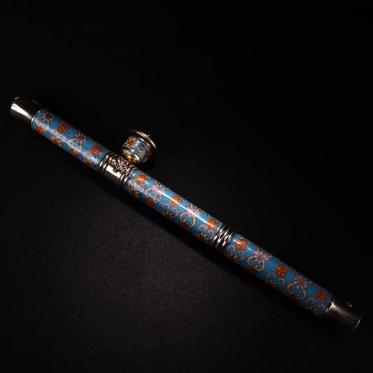 A1844 Vintage Chinese Copper Cloisonne Inlay Gem Tobacco Pipe