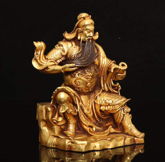 A1820 Chinese Gilt Gold Copper Fortune Taoism Deity Statue