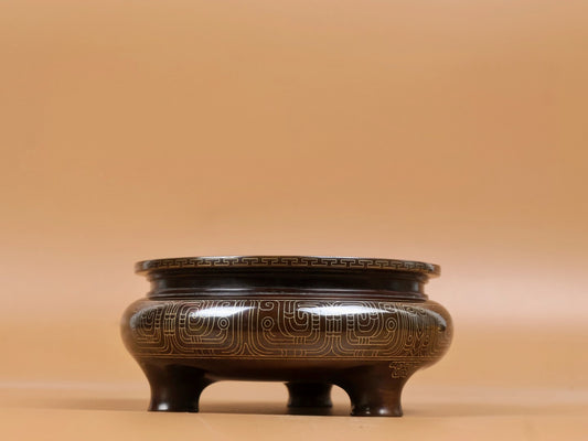 A1900 Vintage Chinese Copper Inlay Silver Wires 3 Leg Incense Burner