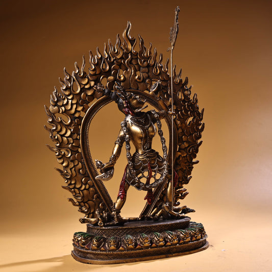 A1787 Tibetan Buddhism Gilt Gold Copper Inlay Turquoise & Gems Vajrapani Statue