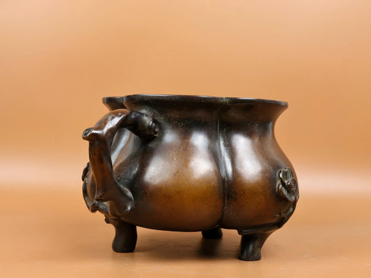 A1793 Vintage Chinese Copper 3 Legs Double Ear Incense Burner