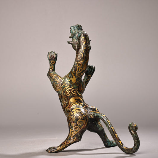 A1079 Vintage Chinese Gilt Gold Bronze Divine Beast Statue