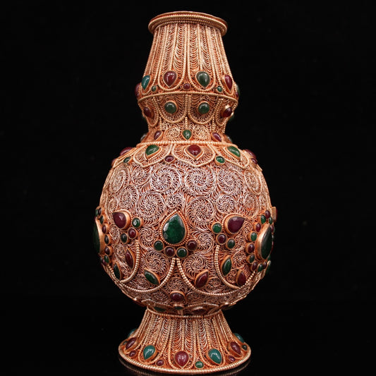 A1094 Tibetan Silver Wires Inlay Gems Vase