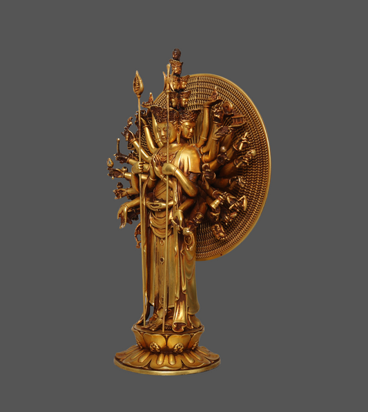 A1183 Superb Chinese Gilt Gold Copper Thousand-hand Bodhisattva Statue