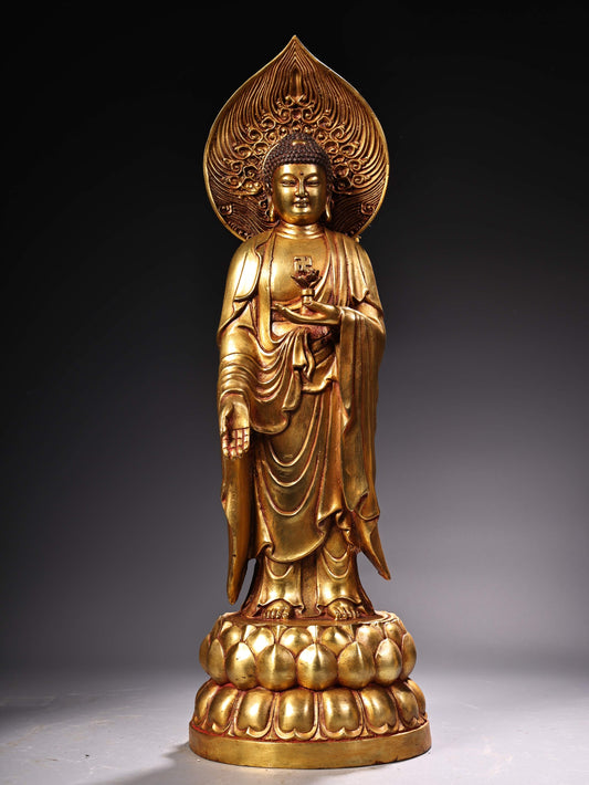 A1226 A Set Chinese Gilt Gold Copper Kwan-yin & Buddha Statues