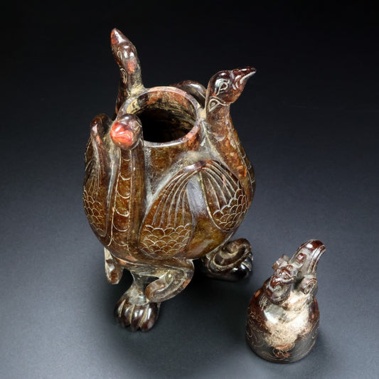 A1021 Superb Vintage Chinese Hetian Jade Carved Divine Beast Incense Burner