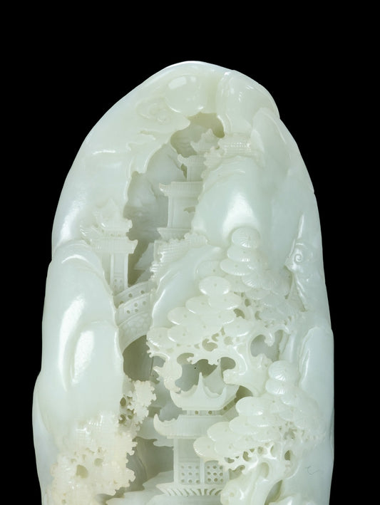 A0669 Superb Chinese White Hetian Jade Hand Carved Pine Tree & Figure Statue