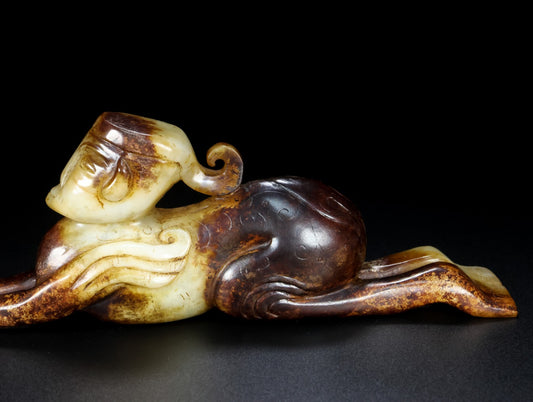 A0704 Superb Vintage Chinese Hetian Jade Carved Fortune Beast Statue