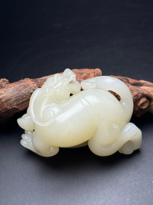 A0188 Chinese Natural Hetian Jade Carved Pixiu Statue