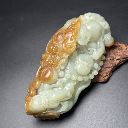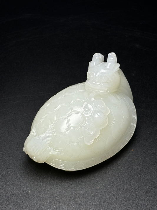 A0258 Vintage Chinese Hetian Jade Carved Dragon Turtle Statue