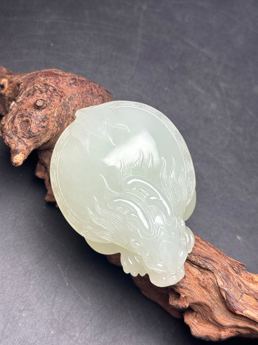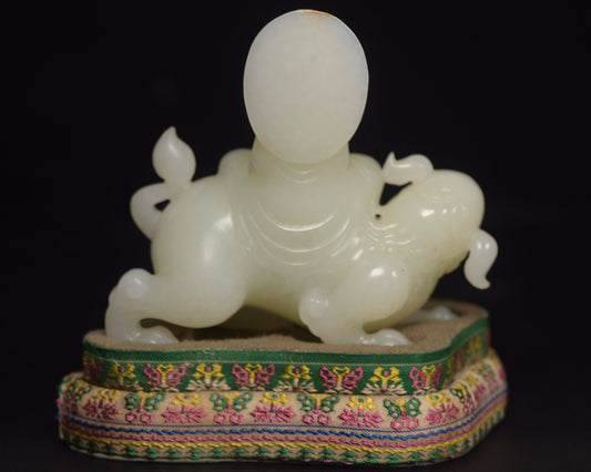 A0355 High Quality Chinese Natural White Hetian Jade Carved Dragon Turtle Statue