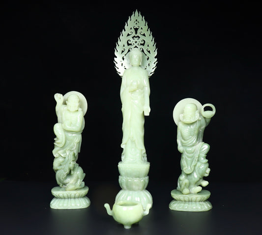 A0242 A Set Chinese Hetian Jade Carved Eighteen Arhat & Buddha Statue w Box