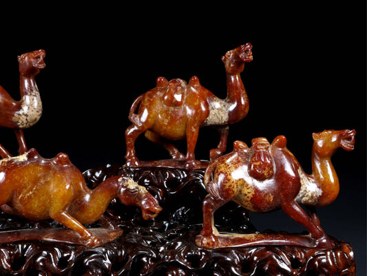 A0311 Five Vintage Chinese Hetian Jade Carved Camel Statues
