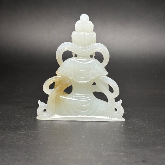 A0334 Vintage Chinese Hetian Jade Carved Kwan-yin Statue