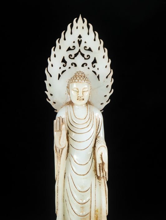 A0218 Superb Old Chinese Hetian Jade Carved Manjushri Bodhisattva Statue w Box