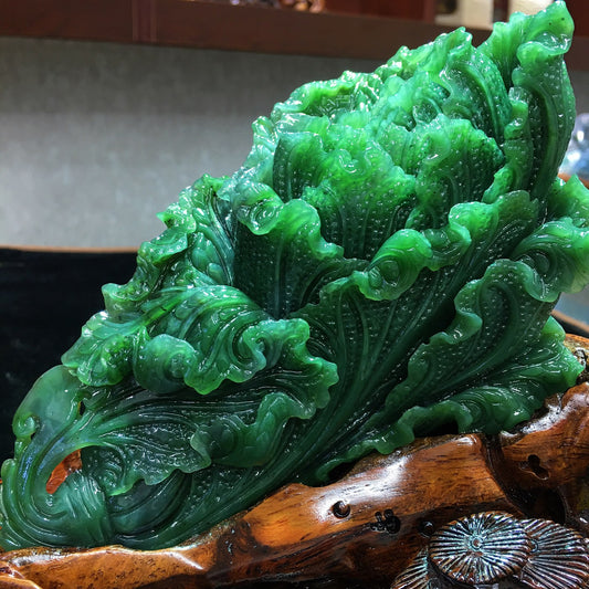 A1620 Superb Chinese Green Hetian Jade Carved Fortune Cabbage Statue