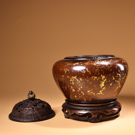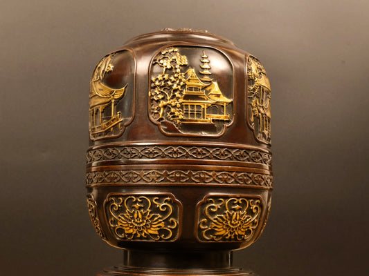A1011 Chinese Gilt Gold Copper Idyllic Scenery Design Incense Burner