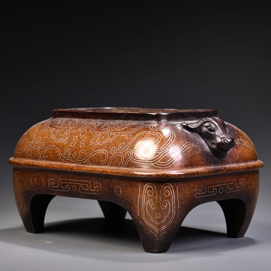 A1250 Chinese Copper Inlay Silver Wires Double Ear Incense Burner