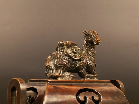 A0891 Vintage Chinese Gilt Gold Copper Incense Burner