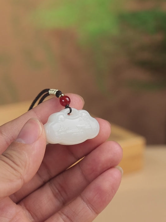 A0180 Chinese Natural White Hetian Jade Lucky Pendant
