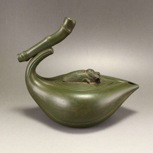Old Green Yixing Zisha Clay Bamboo & Cicada Teapot w Artist Signed