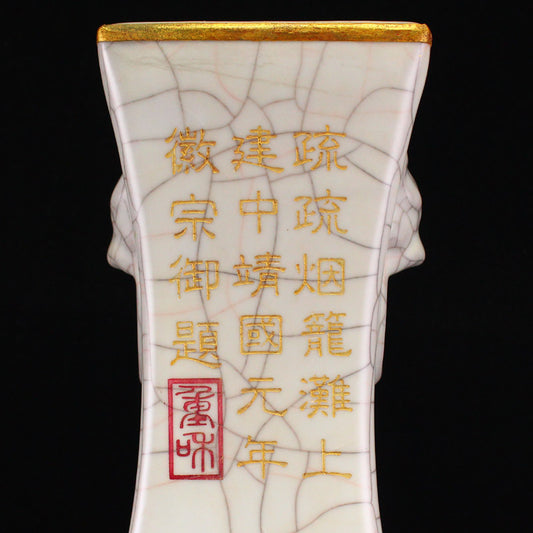 Chinese Gilt Gold Guan Kiln White Glaze Poetic Prose Porcelain Vase