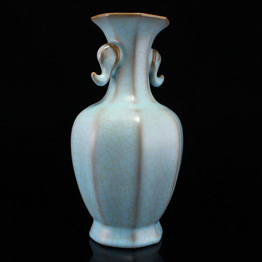 Chinese Ru Kiln Blue Glaze Double Ears Porcelain Vase