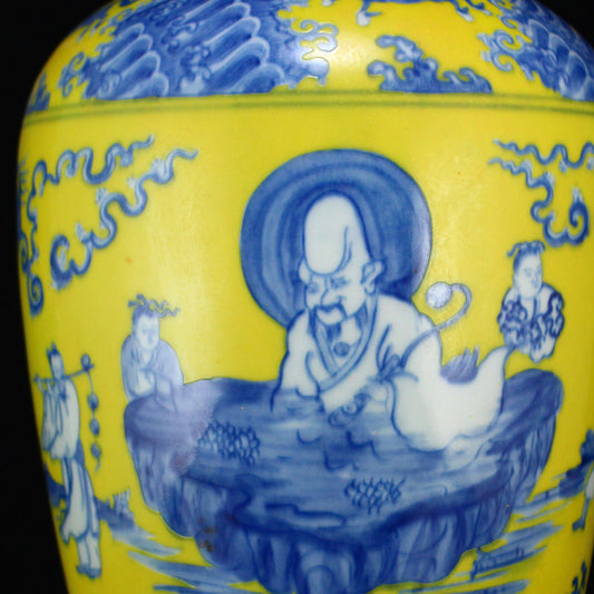 Chinese Yellow Ground Blue And White Porcelain Vase w Chenghua Mark