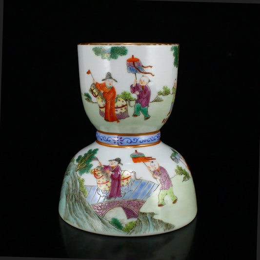Chinese Gilt Edge Famille Rose Porcelain Figures Candlestick w Jiaqing Mark
