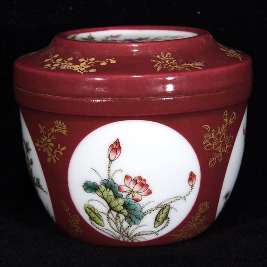 Chinese Gilt Gold Rouge Red Glaze Flower Design Porcelain Pot