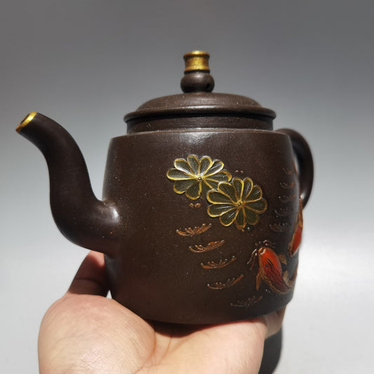 Chinese Gilt Gold Yixing Zisha Clay Teapot w Artist Signed